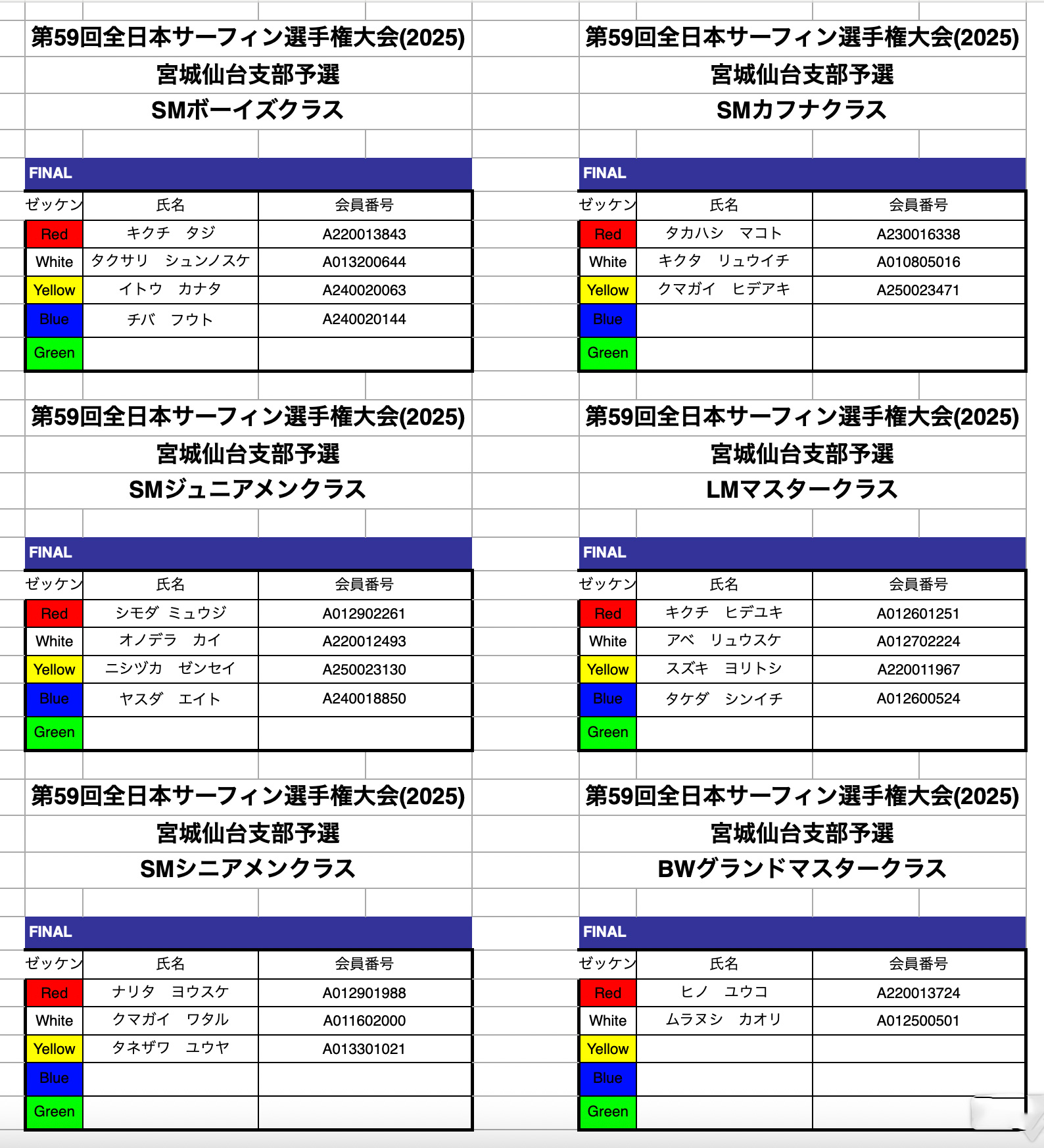 2025年6月22日(日)に開催されます仙台支部予選のヒート表を公開いたしました。